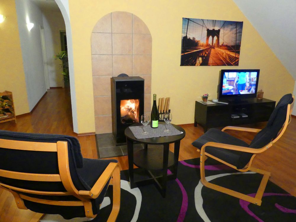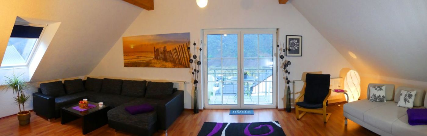 85 qm geräumige Ferienwohnung mit einem Schlafzimmer für bis zu 4 Personen. Der fantastische Blick auf die Mosel und die Burg, wird in kalten Tagen durch den Kamin Ofen zum Wohlfühlerlebnis für die ganze Familie.